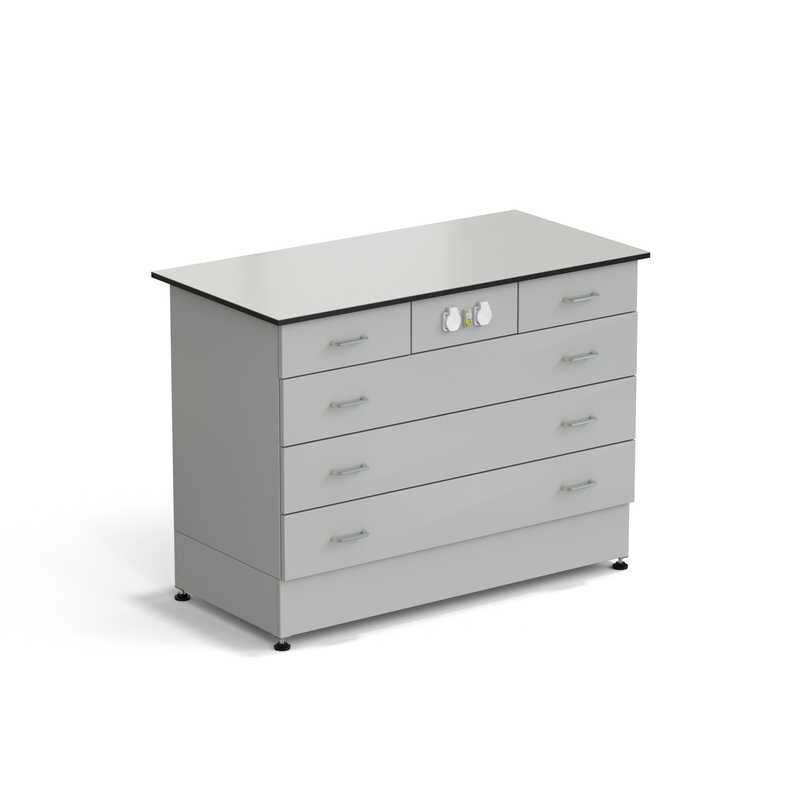 77.0143.10.08-01 Стол-тумба ЭКРОС 1200х600х900 мм 2 ящика + 3 ящика с электрикой, раб. поверхность - LABGRADE