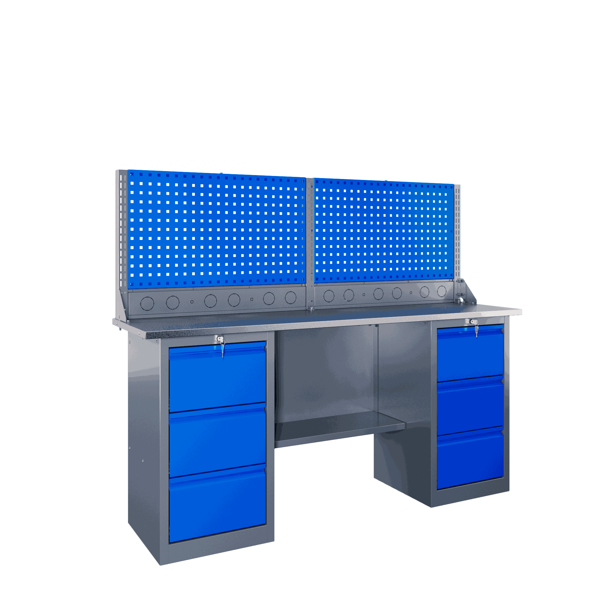 Самые компактные верстаки с глубиной столешницы 500 мм. Благодаря небольшой глубине, такие верстаки легко размещаются в ограниченных пространствах, например, в гаражах, мастерских и тд. Несмотря на компактные размеры, верстаки могут быть оснащены полками, ящиками и держателями для инструментов, что помогает поддерживать порядок и быстро находить нужные предметы.
